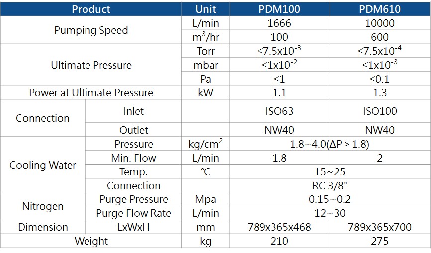 PDM/PMH 系列干式真空泵浦 |