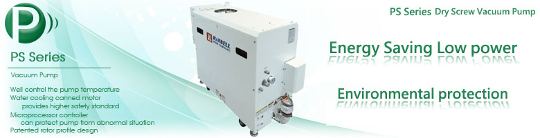 Dry Screw Vacuum Pump S/N type model No.: PS-80、PS-160、PS-180、PS-602、PS-902、PS-1302、PS-1802 PS series S/N type characteristics: Pumping speed:1,600 ~ 30,000 L/Min; Ultimate Pressure:7.5 x 10-3 ~ 7.5 x 10-4 Torr; Central Monitor system(Option) can prevent the abnormal pump stopped; With inverter and interface options, pump can be used in General Vacuum coating , Vacuum oven, Heating treatment, Food and Chemical industry applications |