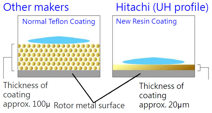 The new resin coating give a uniform pin-hole-less coating over the rotor and shuts off the penetration of water for a long period.